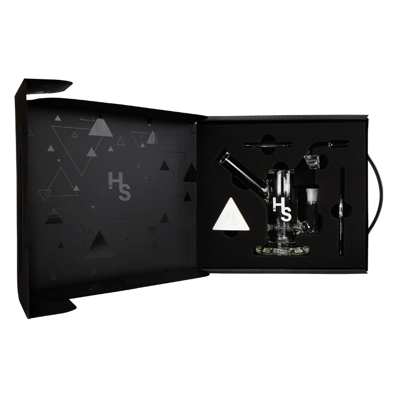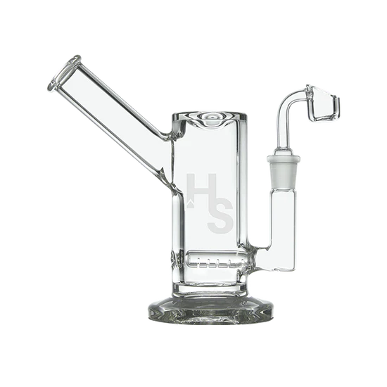 The Higher Standards Heavy Duty Rig is built from 7mm thick medical-grade borosilicate glass for unmatched durability and performance. Featuring a diffused downstem and a quartz banger, it delivers smooth draws and clean flavor. Its compact size and premium craftsmanship make it a top choice for those seeking a high-quality, dual-use water pipe.