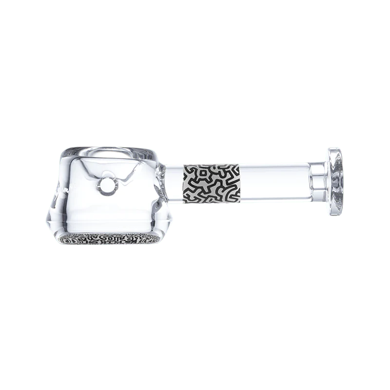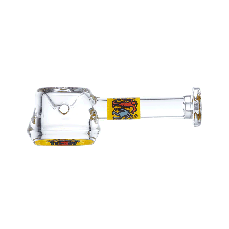 The K. Haring Spoon is an artistic collaboration that seamlessly blends form and function, offering a smoking experience as captivating as Haring's iconic artwork. This durable and lightweight hammer-style pipe is crafted from borosilicate glass, delivering exceptional flavor and showcasing Haring's signature bold lines and vibrant colors.